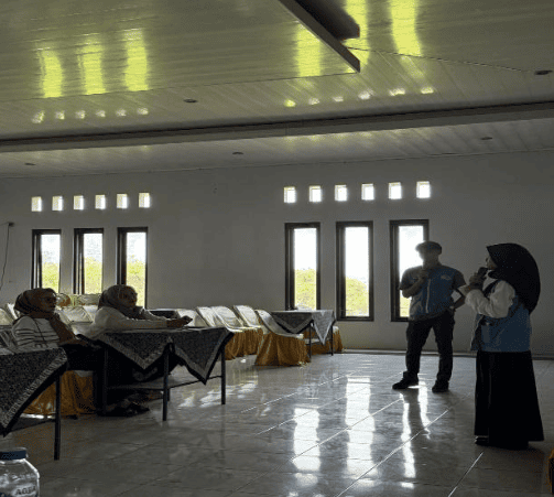 In the second week of teaching, two sessions were held. The first session on Monday, August 11, 2025, on the second floor of the Ponggok village office, discussed “ticketing and marketing.” This activity was attended by six Umbul Ponggok staff members and focused on understanding ticket sales processes and simple marketing strategies to attract tourists. Through this material, participants learned how to explain ticket prices, provide information about tour packages, and improve their ability to interact effectively with visitors.